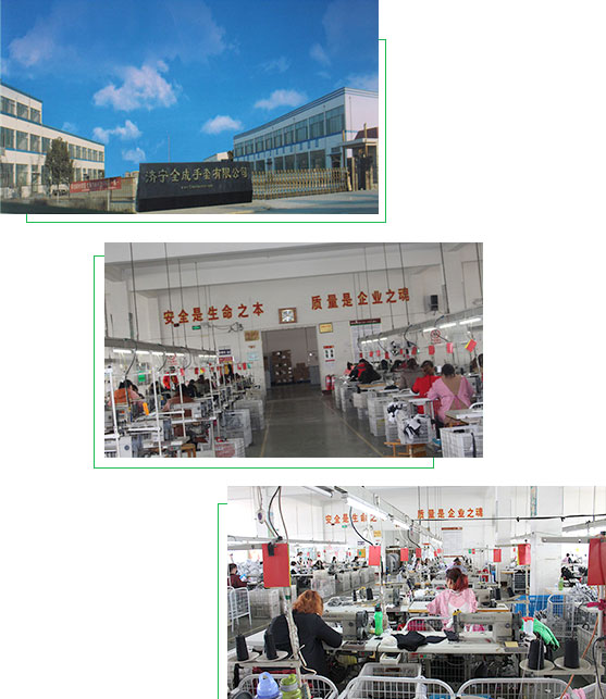 工廠始建于1999年9月,總投資8500萬人民幣,占地面積120畝,車間建筑面積53000平方米,倉庫8500平方米,現(xiàn)有員工960名,各種機器設備985臺,15臺160頭刺繡機,3臺多功能電腦車,年生產(chǎn)主導產(chǎn)品手套360萬雙,是中國海關AA 類企業(yè),是嘉祥縣手套協(xié)會會長單位。
